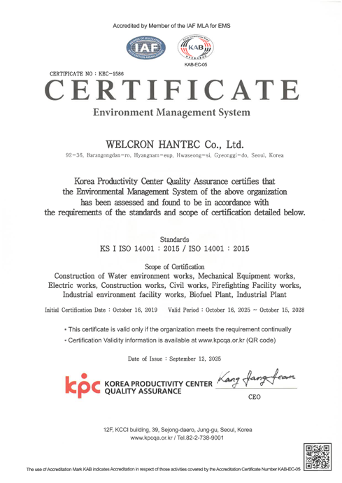 Welcron Hantec is committed to realizing carbon neutrality by applying eco-friendly technologies across our businesses in response to climate change. We proactively address global demands through environmental management in accordance with ISO 14001, and we take the lead in establishing a sustainable resource circulation cycle — from waste treatment to energy conversion.